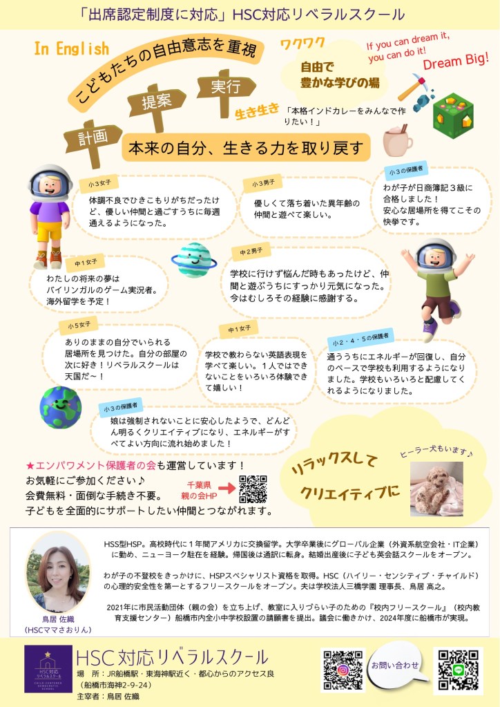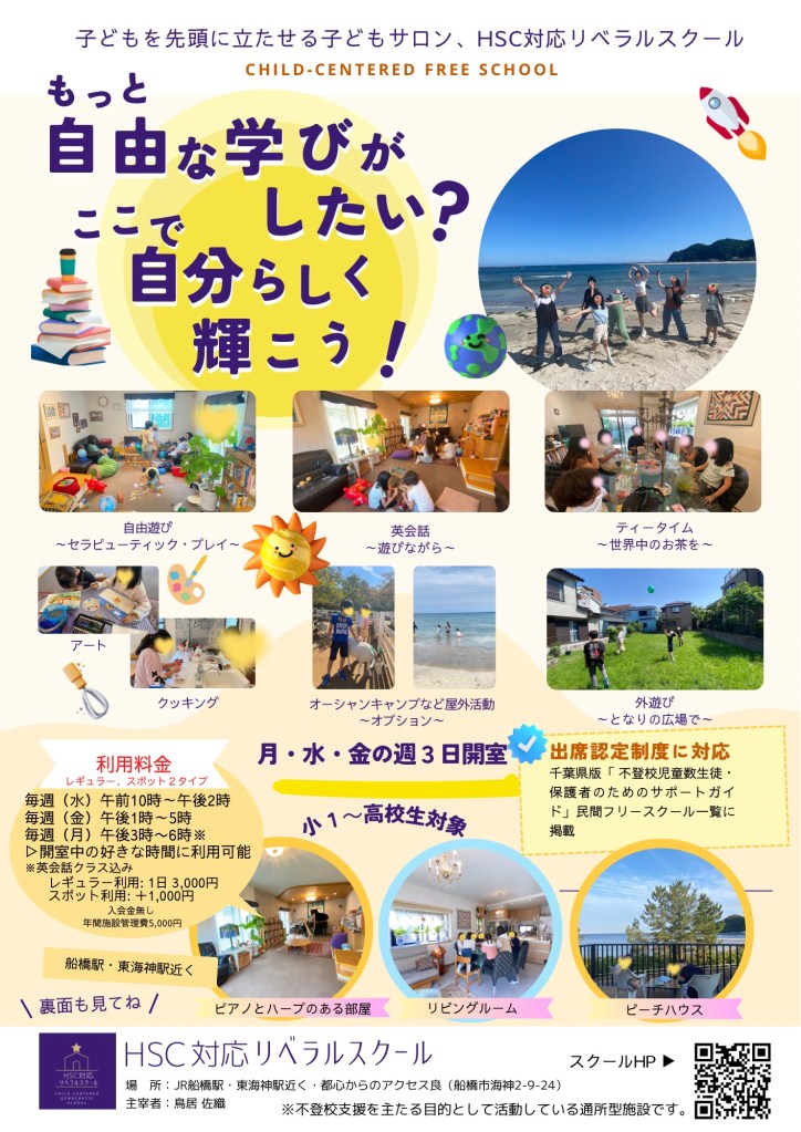 ここは HSC(ハイリー・センシティブ・チャイルド) や「自分らしく安心して過ごしたい」子どもたちのための 自宅フリースクール。