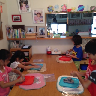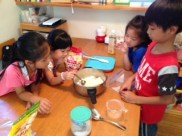 Pour all the mixed ingredients into the pan. 材料ぜんぶいれて。