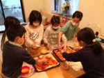 卵液を利用して春巻きの皮で簡単ピザを作り、火曜日クラスはお庭で、木曜日クラスはZathura(ザスーラ)のDVD(英語音声)を観ながらピザパーティーしました♪