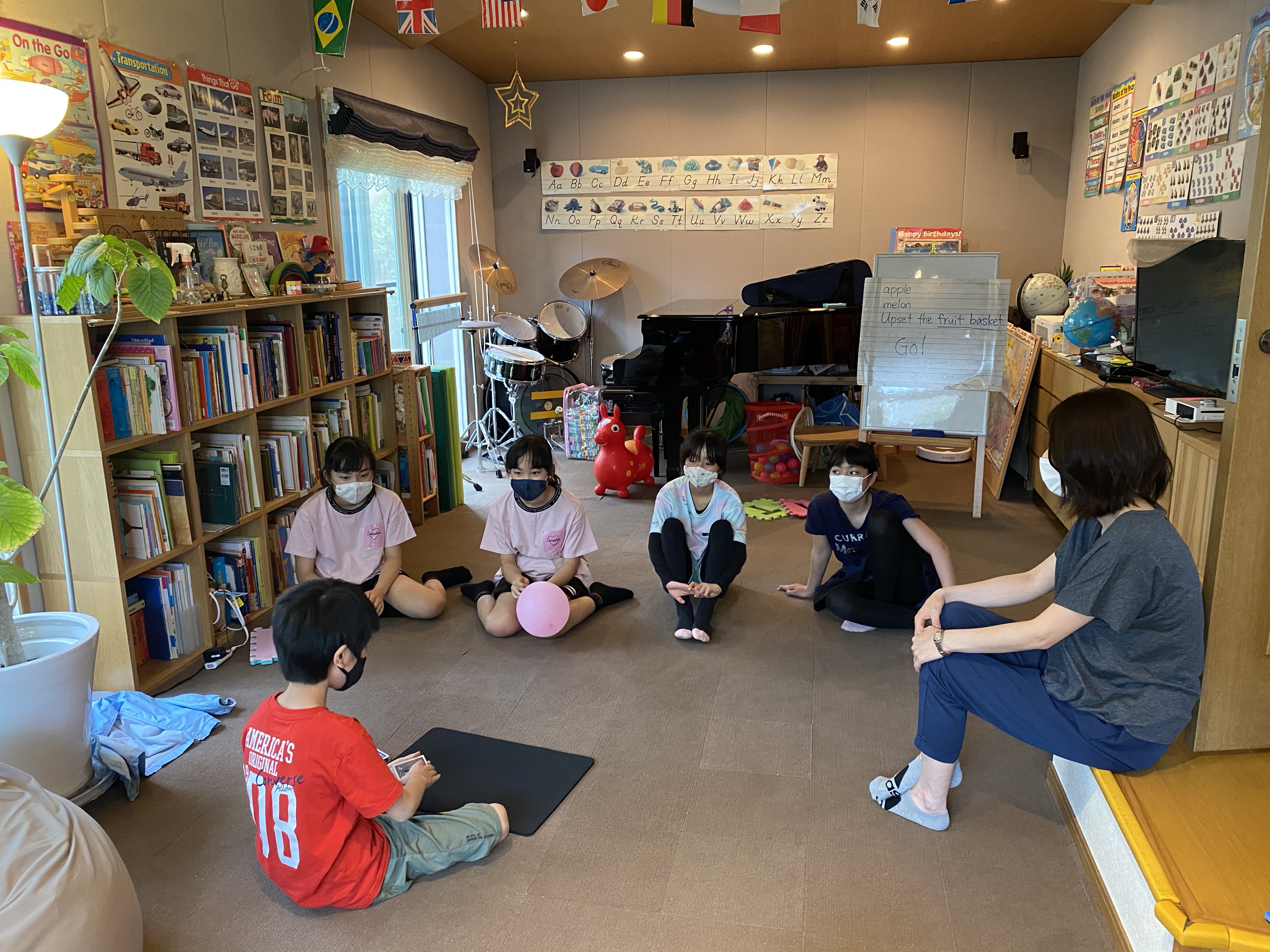 Kanaちゃんが手描きの絵を見せ、アメリカ流クイズを出してくれたり、子どもたちがお題を出し、各自大急ぎで持ってくるBring somethingゲームをしたり、Kanaちゃんにアメリカの文化について質問したりして盛り上がりました。