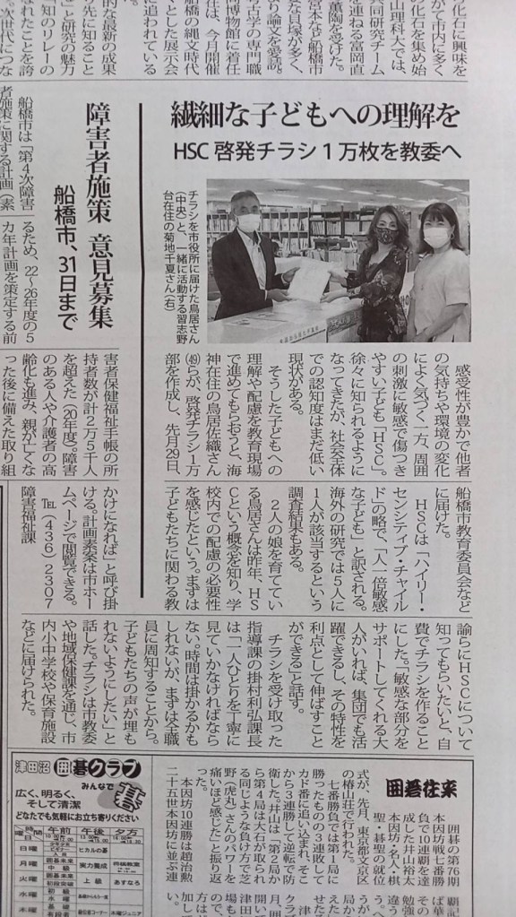 近々『HSCをサポートする会』(仮)の市民活動団体を立ち上げます。