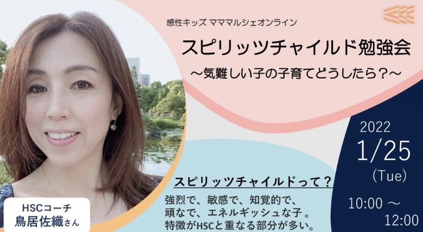 もう一つあらためて、1月25日火曜日10時『スピリッツチャイルド勉強会』のお知らせです。敏感 & キカンキの強いお子さんを育てているお父さんお母さん、ご相談を受けている保育士さん、ぜひ理解を深めてはいかがでしょうか(日本初です)↓