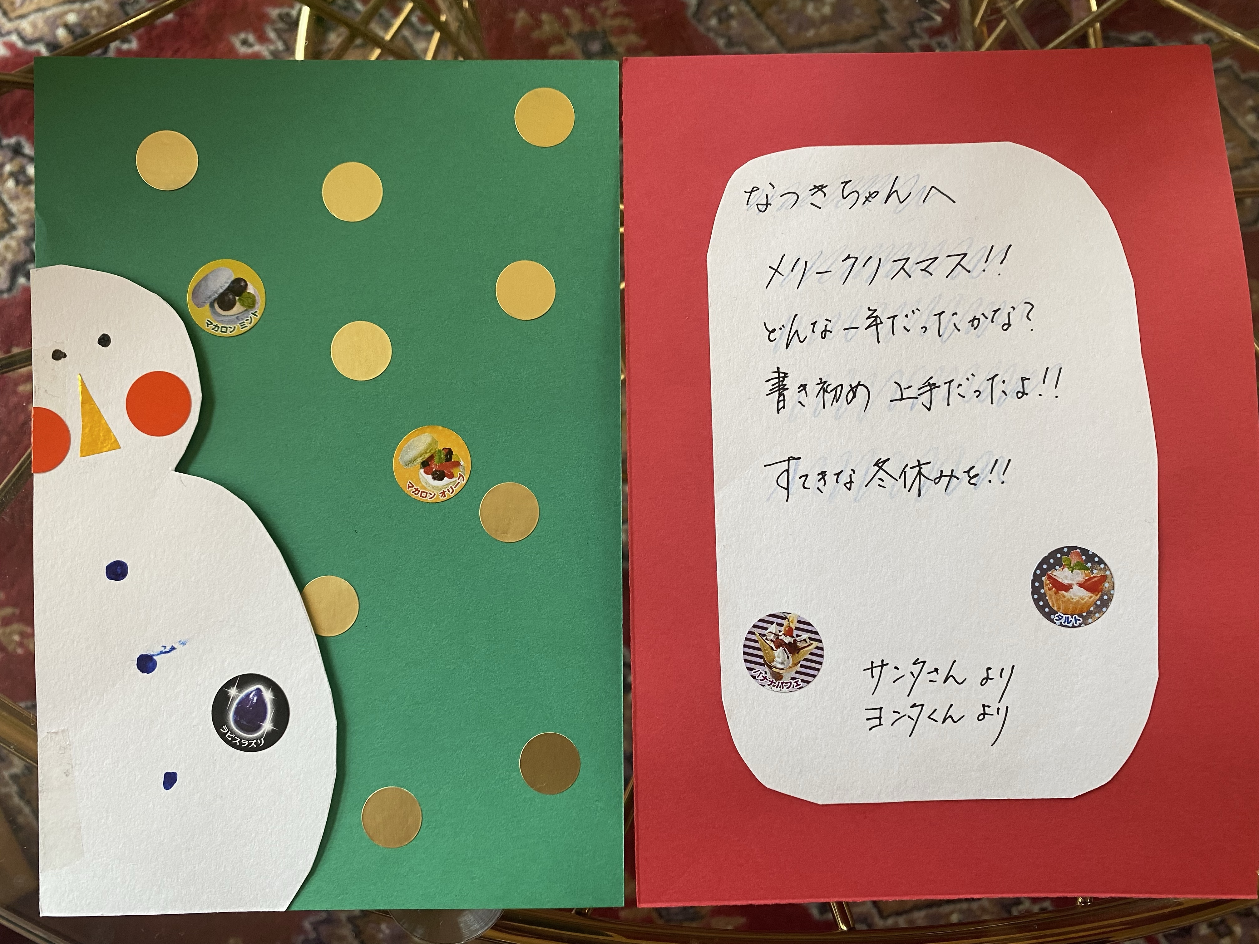 学校でもらったクリスマスカードの「サンタさんとヨンタくん」は担任とO先生のことらしい。いちいち感動して泣けます(ToT)