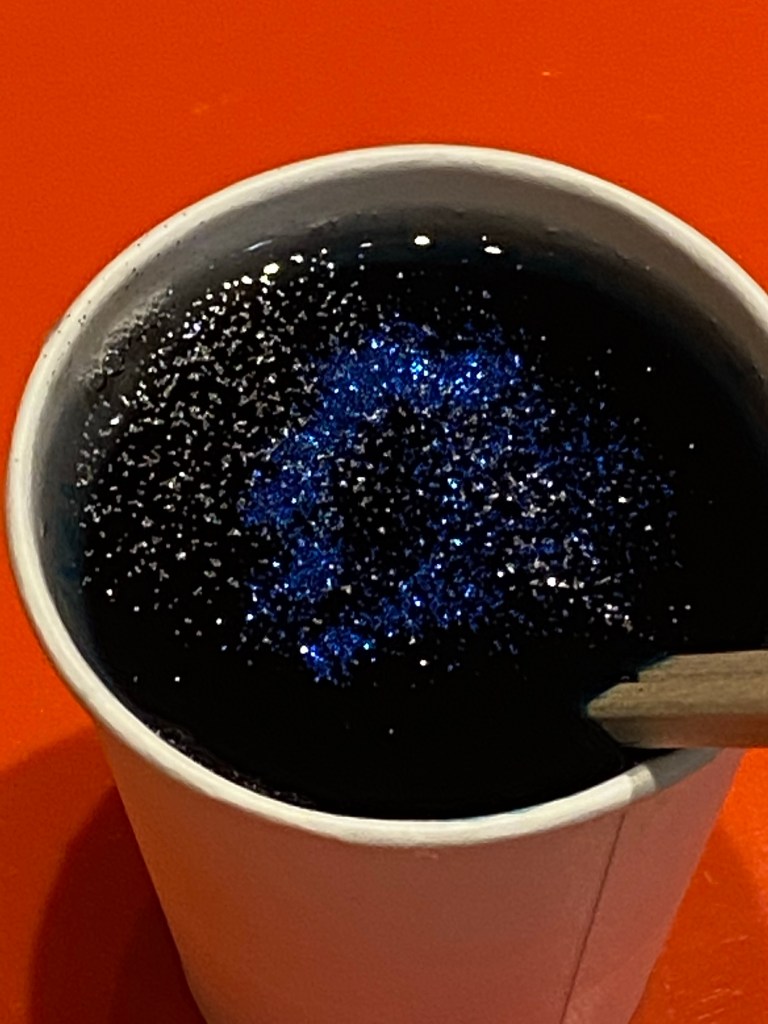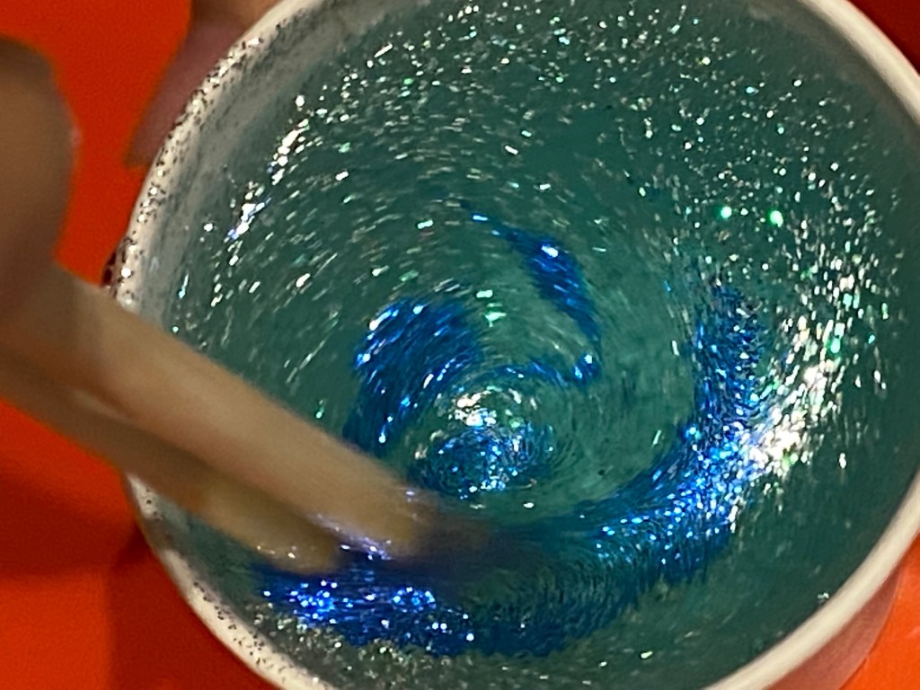 今日の英会話レッスンでは、Solar systemやplanet songsを歌い、銀河の図鑑を眺めて、銀河に思いを馳せながら英語でグリッター入りの銀河スライムを作りました。