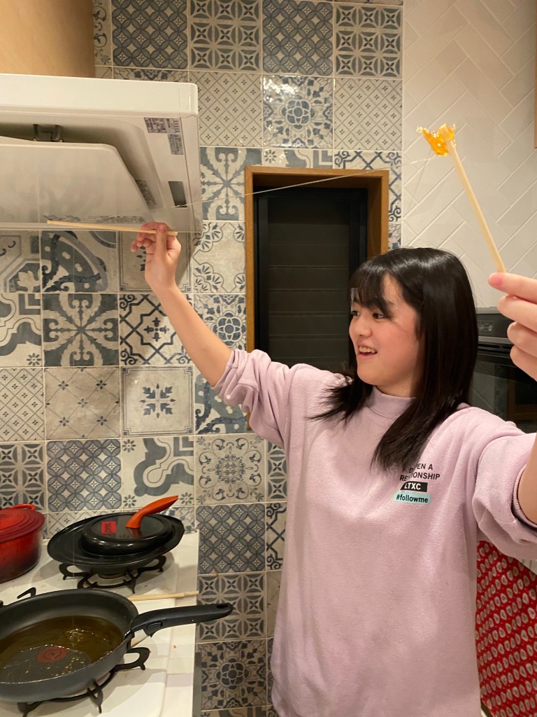 残った飴で、ラプンツェルの金色の髪を飴細工しました。子どもの想像力はなんて素敵なんでしょう♡