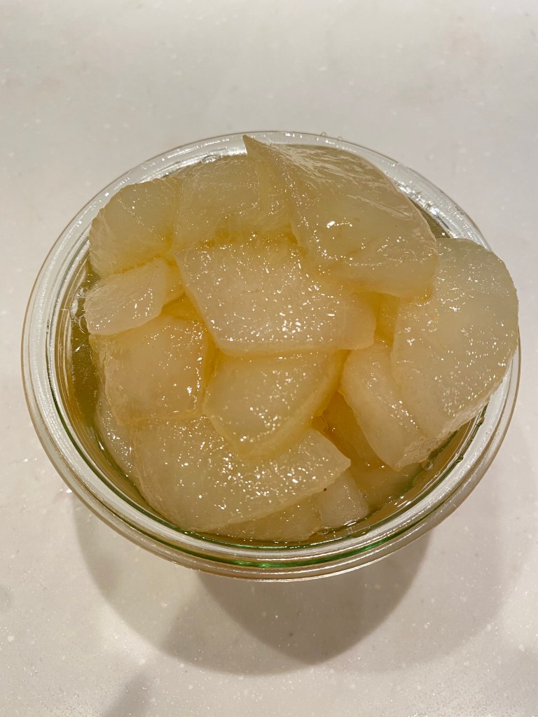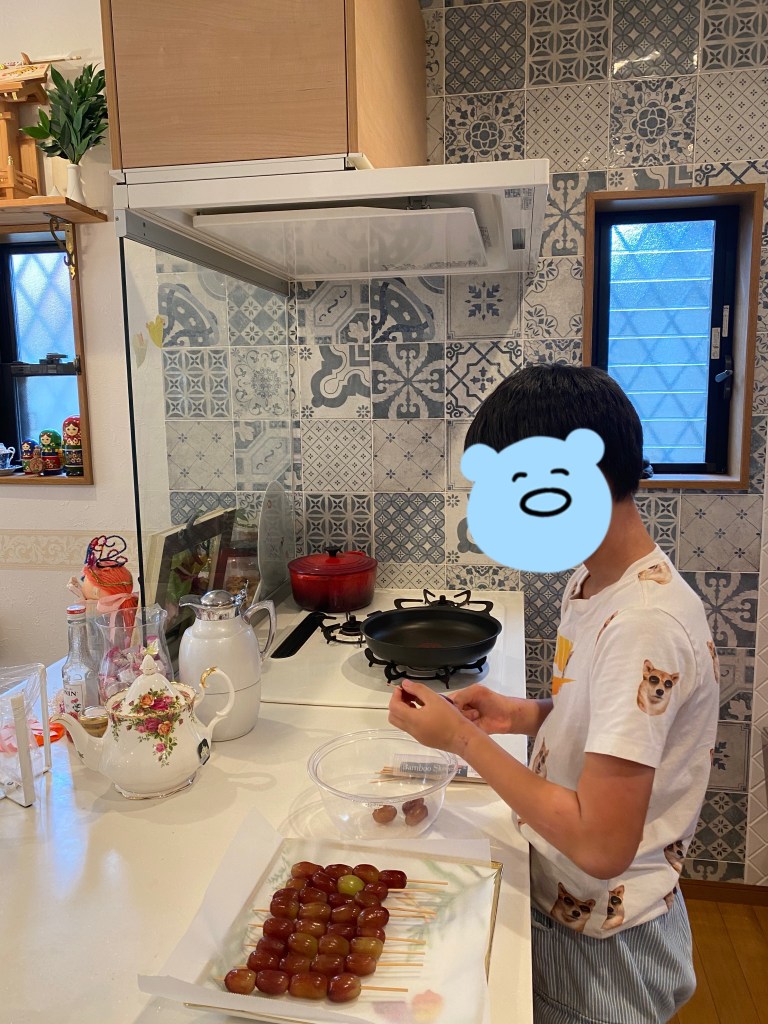 ご寄付でいただいた梨とぶどうを使って、子どもたちのアイディアでぶどう飴と梨ジャムを作りました♪美味しかったです)^o^(