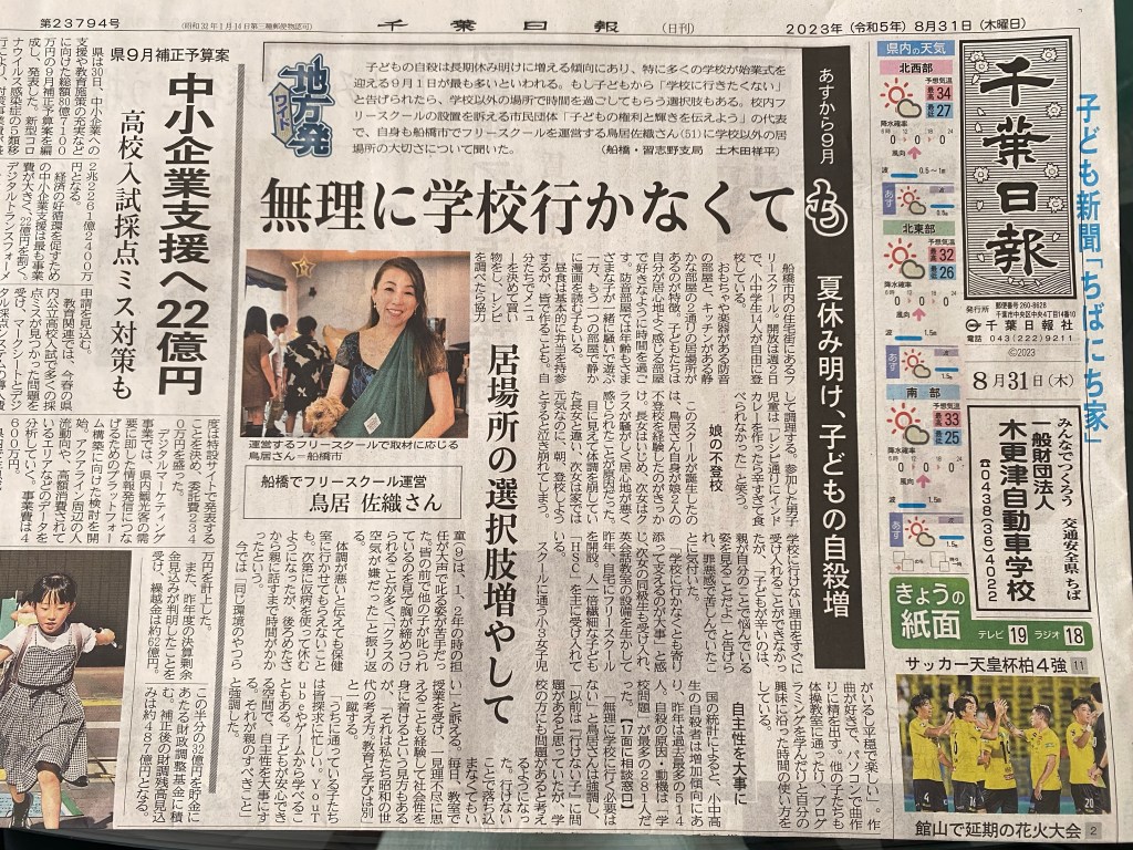 千葉県不登校条例でフリースクール等利用の経済的支援、きっと実現するよ‼️😃🌈みんなの笑顔が楽しみ🌼