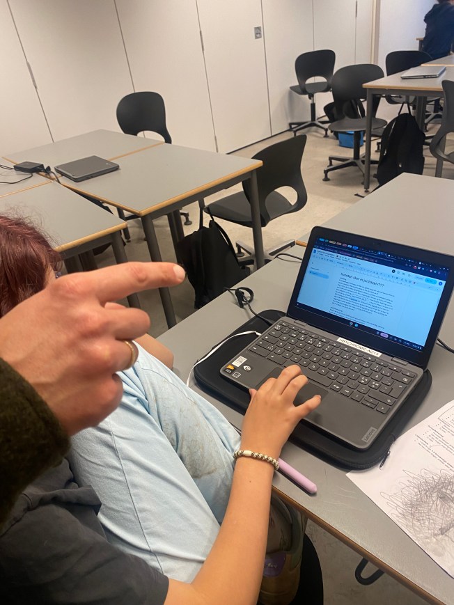 ・A dyslexic student researching earthquakes on a Chromebook