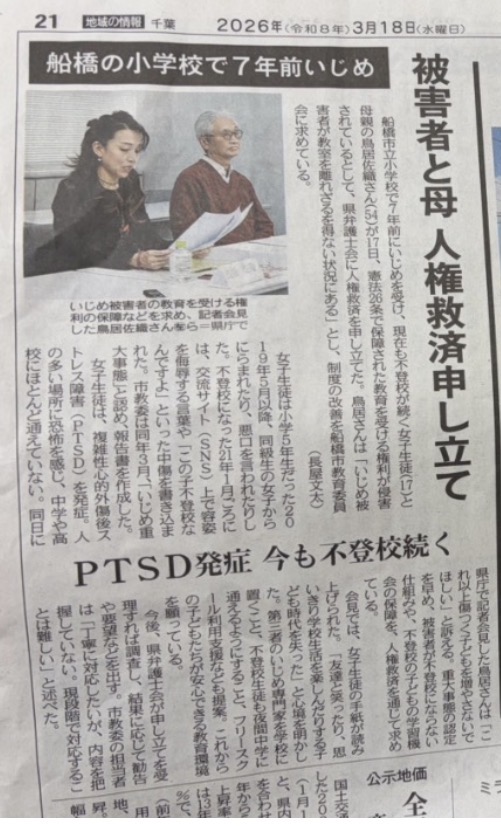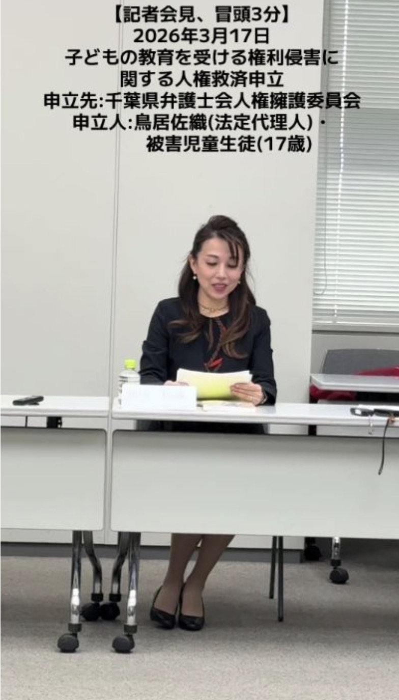 昨日、『いじめ重大事態に関する人権救済申立』について、記者会見を行いました。