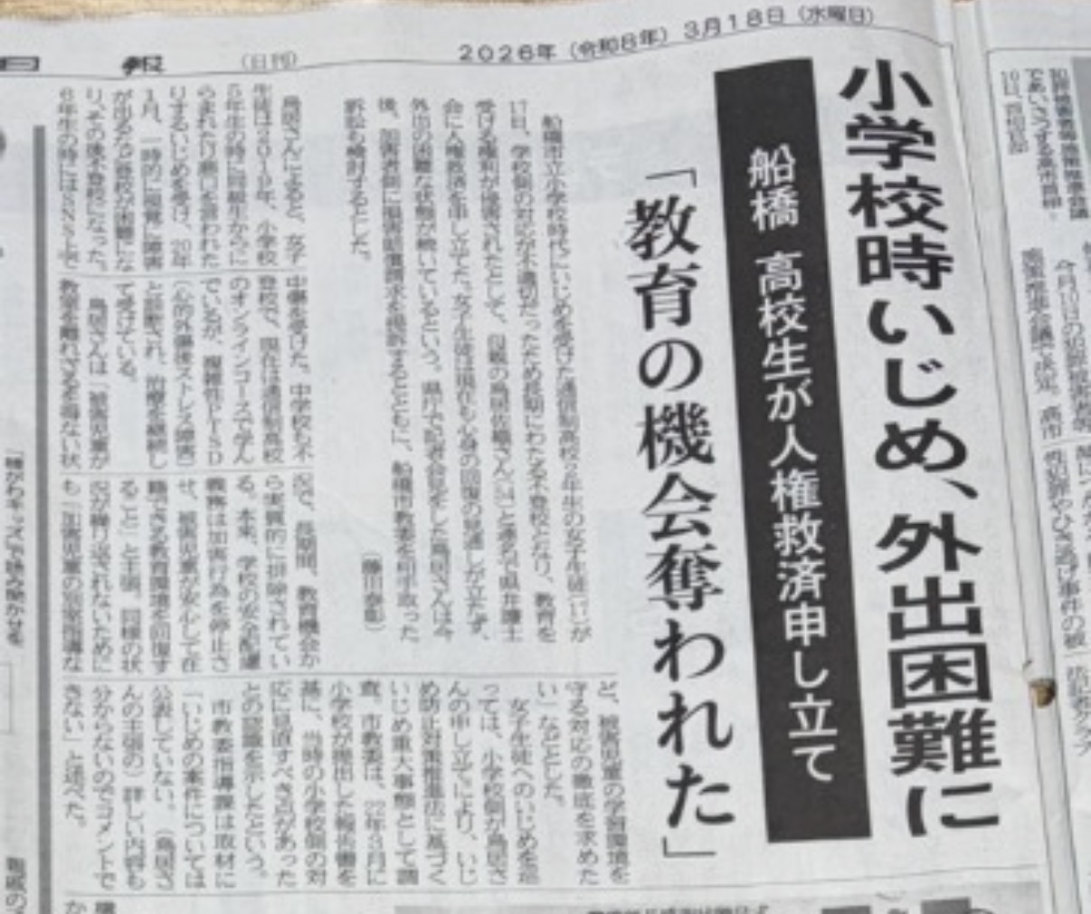 その間、義務教育を4年以上にわたり実質的に受けることができず、現在も社会とのつながりに困難を抱えています。