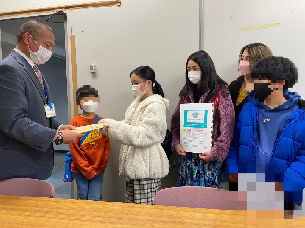 会見後、県教育委員会児童生徒課に、316人の署名リストとHSCたちのプレゼン資料を、子どもたちが提出しました。
