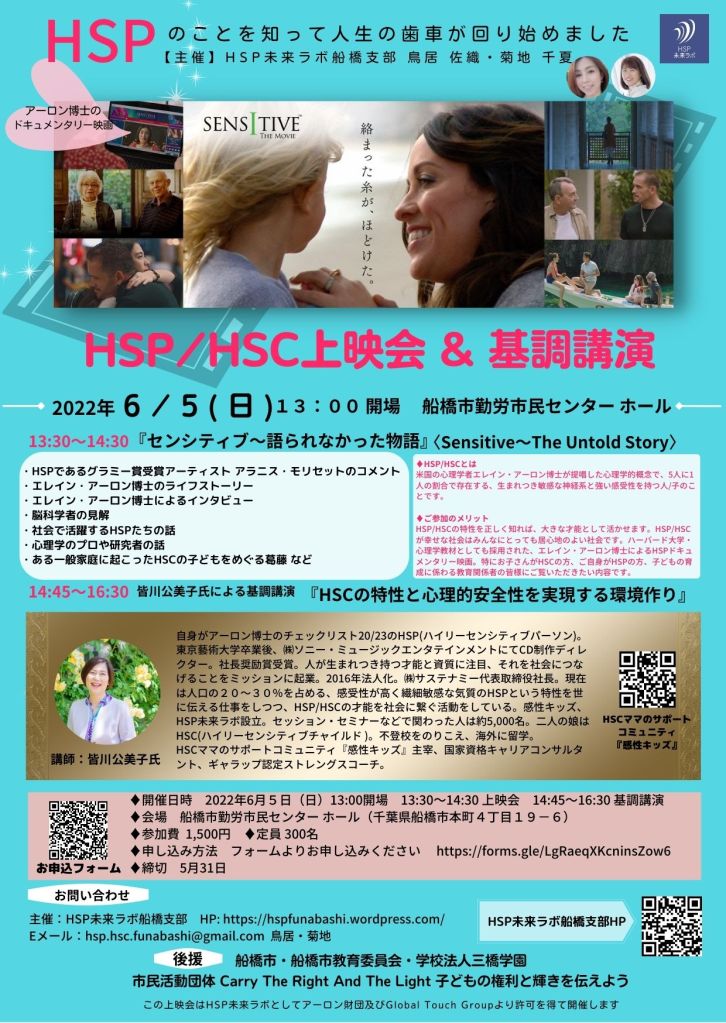 ●終了しました『HSP/HSC上映会 & 基調講演』in 船橋